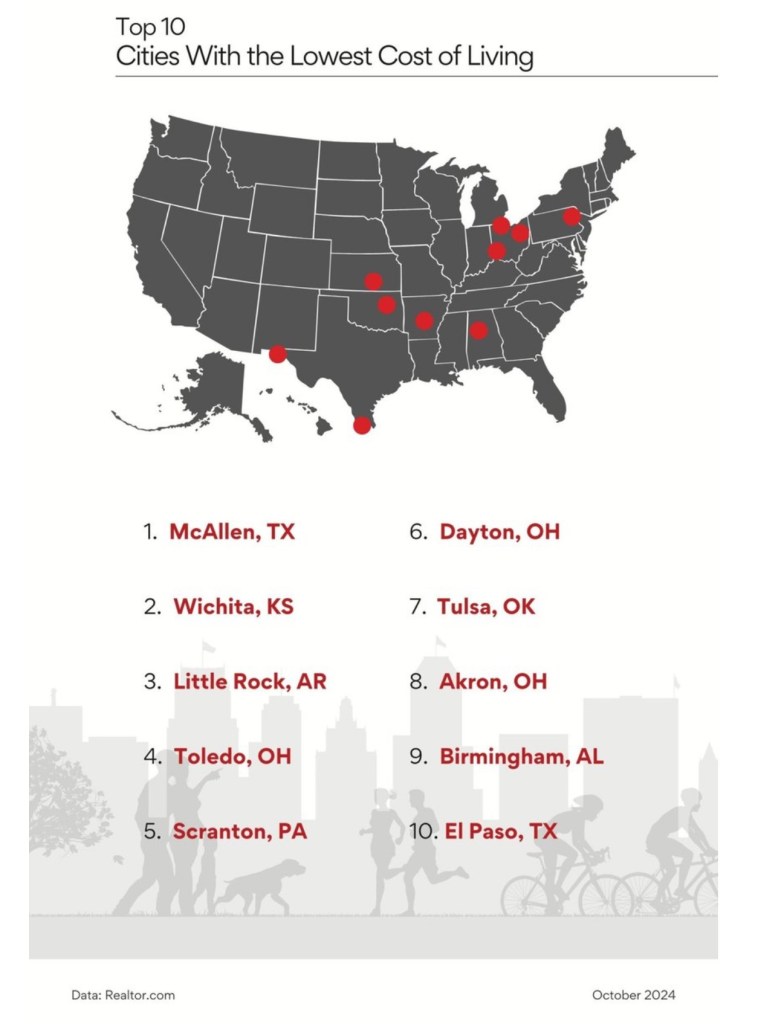 Recent research from the economic team at Realtor.com® reveals the cities where you can enjoy a high quality of life without breaking the bank. By analyzing the latest Regional Price Parities (RPPs) data from the Bureau of Economic Analysis, they’ve identified the top locations where living expenses are dramatically lower than the national average.