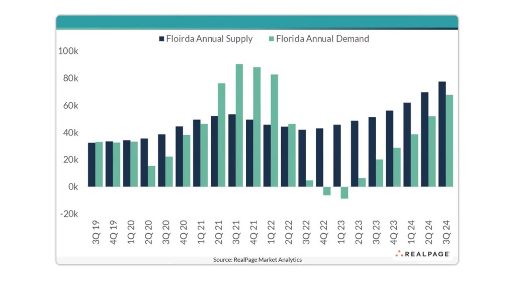 As of Q3, demand surged to nearly 68,000 units—coming close to the record supply growth. Florida’s apartment market is, therefore, not only meeting population influxes but doing so with a pace and scale that few other states can match.
