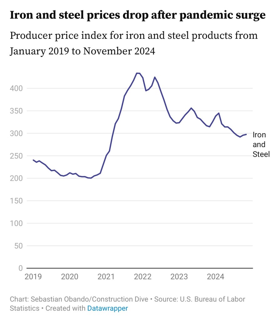 Bryan Ehrlich, President of NCE General Contractors, noted that such increases could reverse recent trends of declining steel prices, adding strain to already tight project budgets.