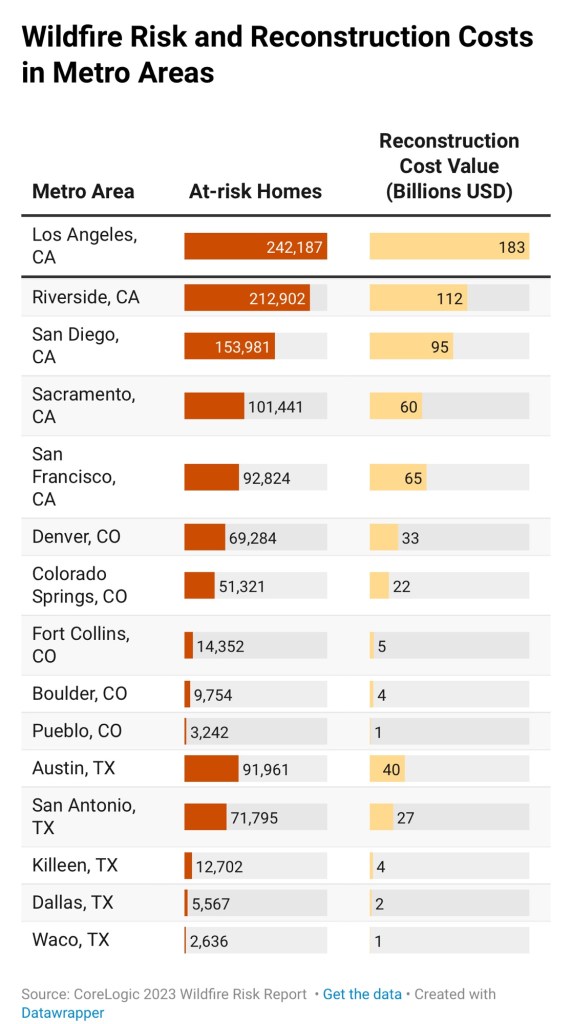 In California’s wildfire-prone Pacific Palisades neighborhood, exposure under the state’s FAIR Plan (an insurer of last resort) soared from $436 million in 2020 to nearly $3 billion by late 2024. Private insurers like State Farm have pulled out of high-risk areas, leaving homeowners with fewer and more expensive options.