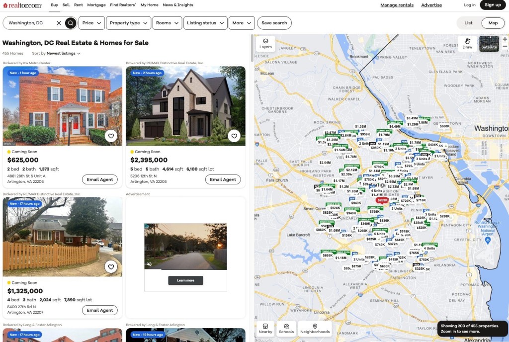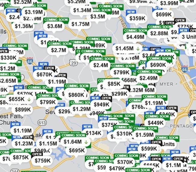 Recent viral images purporting to show an explosion of listings in DC suburbs, particularly Arlington, VA, have been misleading. One widely shared Realtor.com® map was cropped and zoomed in a way that exaggerated the number of available properties.